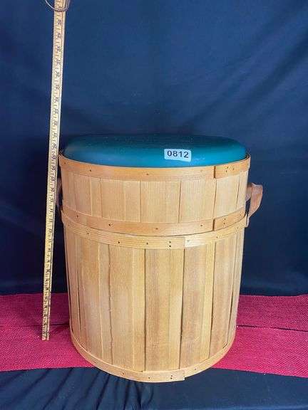 LOT 812 - VERY BIG Large Vintage Petersboro Basket Cooler with Green Padded Seat