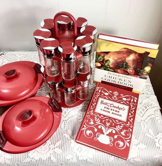Red Spice Carousel, Two Indit Warming Pots & 2 Cook Books