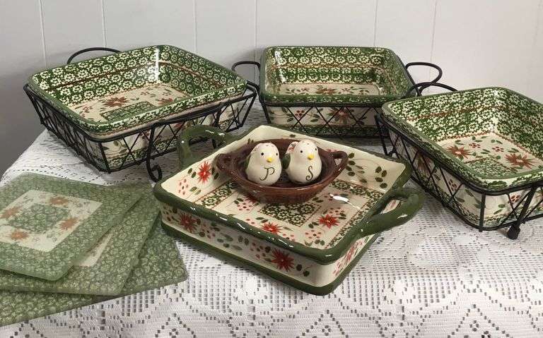 Temp-Tations Old World 3 Hot Plates, Salt & Pepper with Nest Bowl, 1.5Qt,2Qt & 2.5Qt Square Dishes W/ Wire Baskets & 9" Casserole Dish