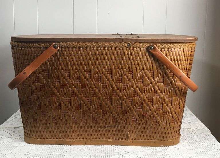 LOT 850 - Very Large Hand Woven Double Sided Lid Picnic Basket