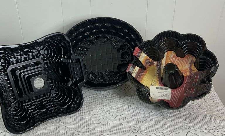 9.5" x 4.5" New Festival Bunt Pan, 9" x 4.5" Castle shaped pan & 11" x 2.5" Nordic Ware MariAnne Pan 10c/2.4
