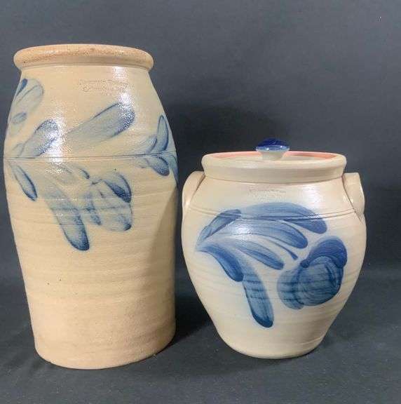 LOT 928 - Wisconsin Pottery Salt Glazed Crock Canister With Lid & Mel 1987 Preserve Jar