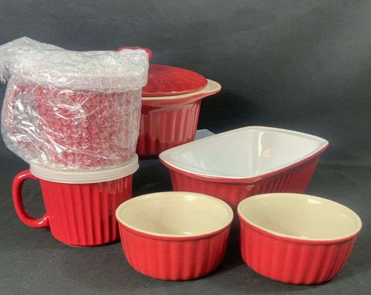 Bialetti Casa Italia Red Stoneware 9 x 5 Loaf Pan, 1.5Qt Stoneware Casserole Pan With Lid, Two 16oz Soup Cup & Two 14oz Bowls