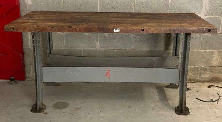 Steel Base with 2” thick Wood top. 6ft’W x 34”H x 30”D. If you want to see before you bid on this, text me to come Thur. Mid-morning. 770-855-0533 Jill