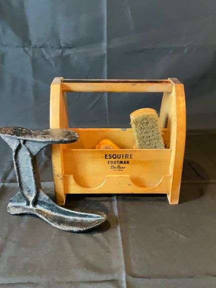 LOT 084 - Vintage Esquire Footman Deluxe Shoe Cleaner Set & Antique Shoe Holder