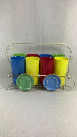 LOT 037 - Vintage Drink Carrier Caddie including Cups & Coasters
