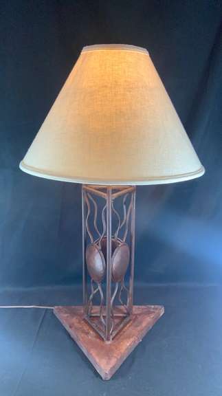 34”H x 19”W. Heavy Sturdy Lamp. Missing a finial.